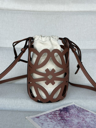 L0ew* anagram cut-out pocket in classic calfskin and canvas 20x11x8cm